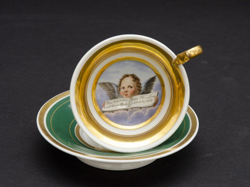 Neo gothical “Enjoy your days” cup and saucer, KPM Berlin