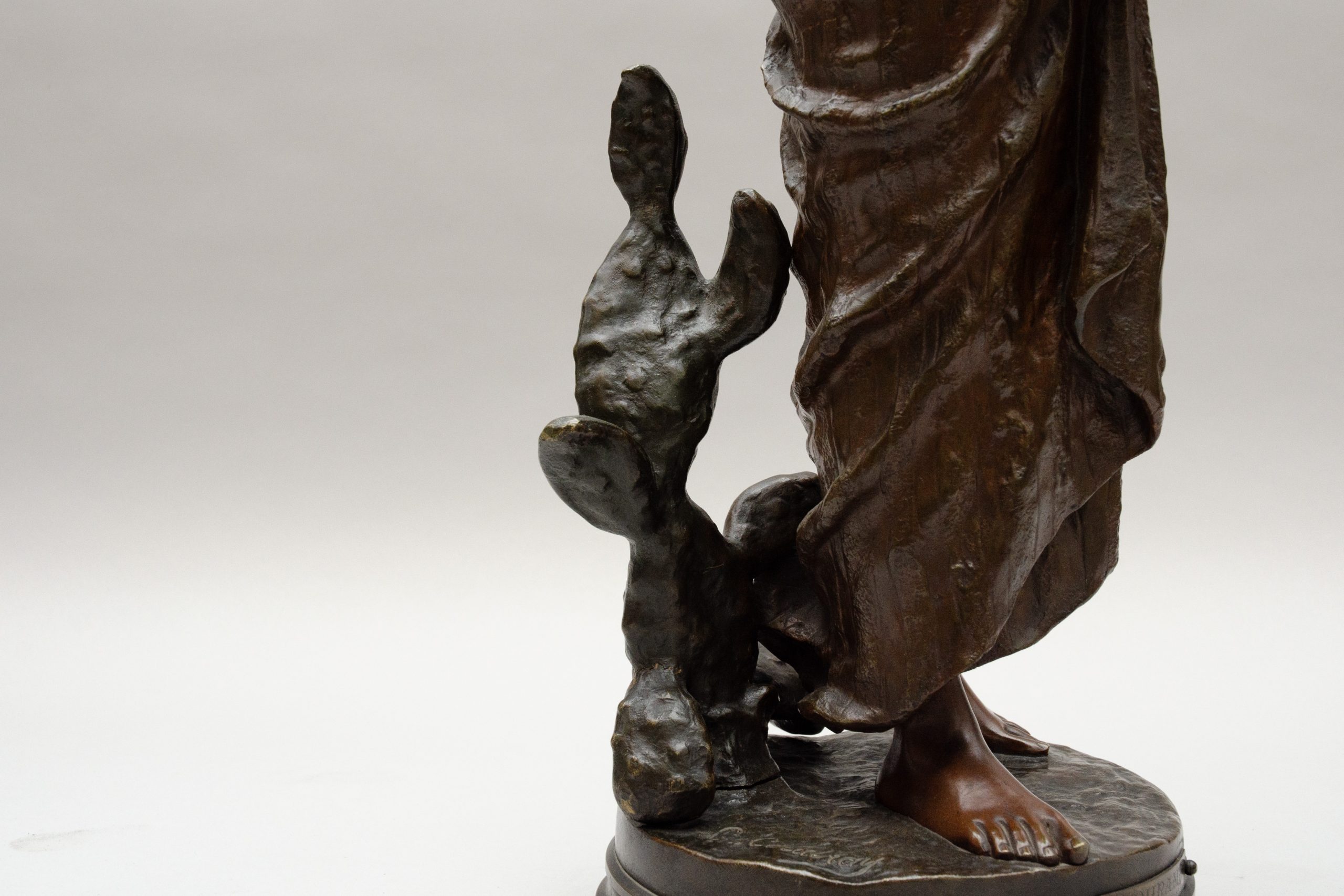 Lit: Born in Paris, son of a cabinetmaker, Marie Georges Charles started his education as a sculpture at the School of fine Arts of Paris in 1884 under the supervision of Alexandre Falguière and later Gabriel Jules Thomas. He exhibited regularly at the Salon from 1883 till 1890 and then sporadically until 1903. Among his most characteristic works are “Aquila” (bronze 1892), “Les Nénuphars” (terra cotta bust, 1899) and of course his most famous work “Tahoser”, model of a young Egyptian harpist inspired by the Roman de la Momie by Théophile Gautier (Plaster presented at the Salon of 1892). Coudray is also known as an orientalist.