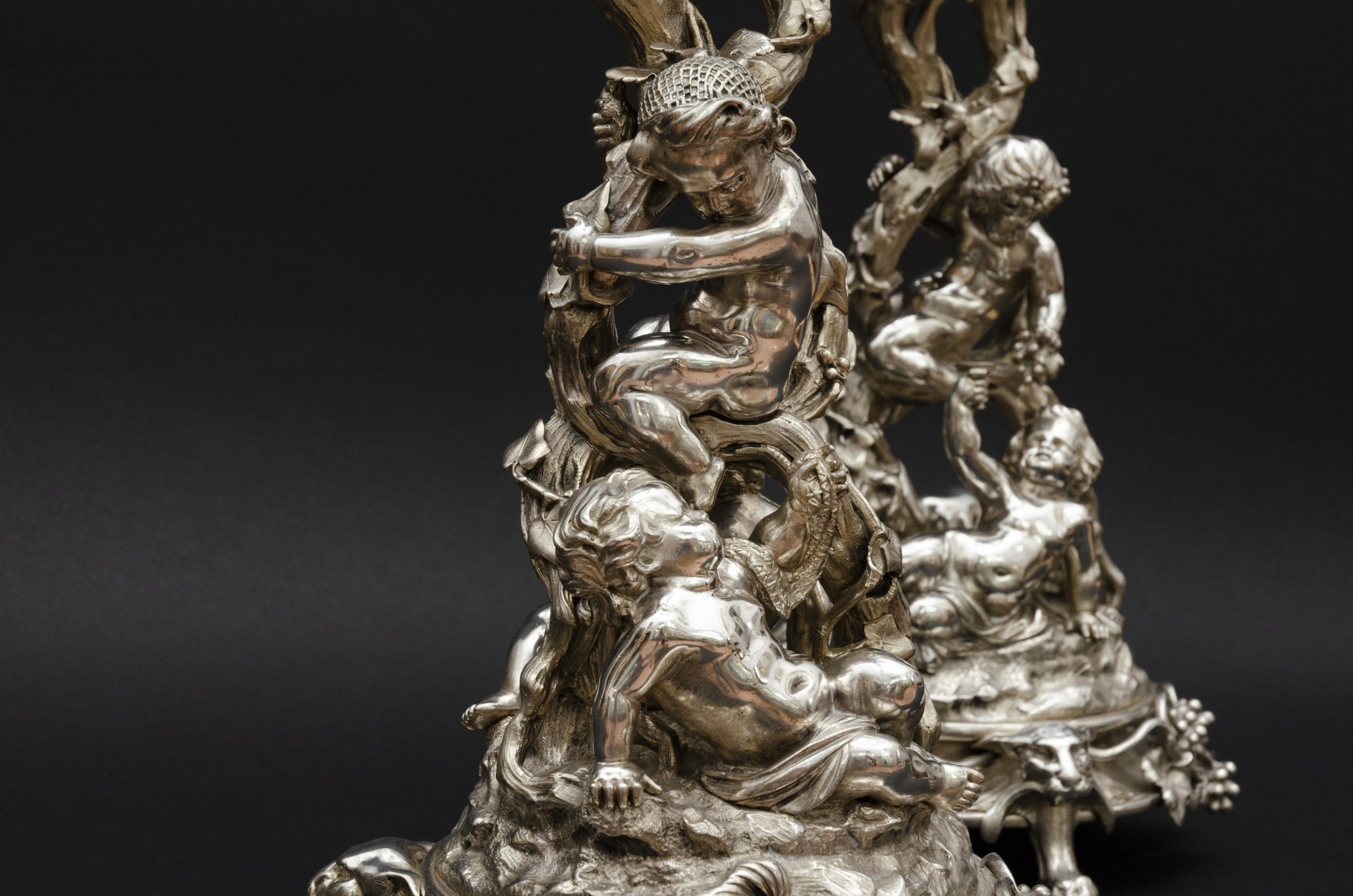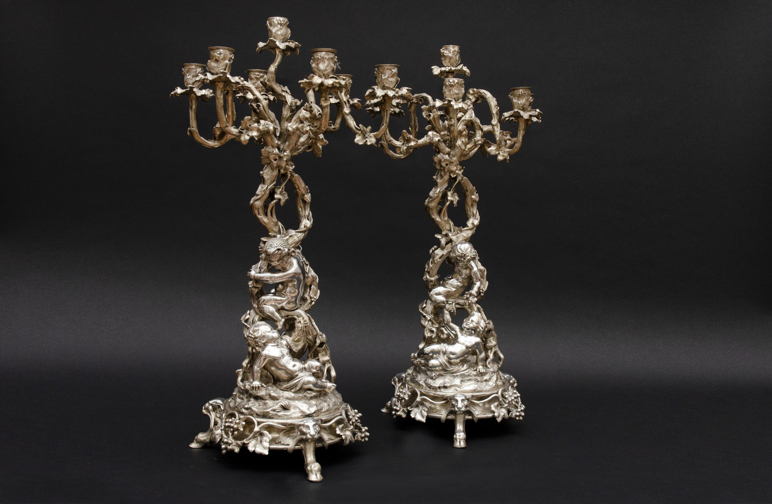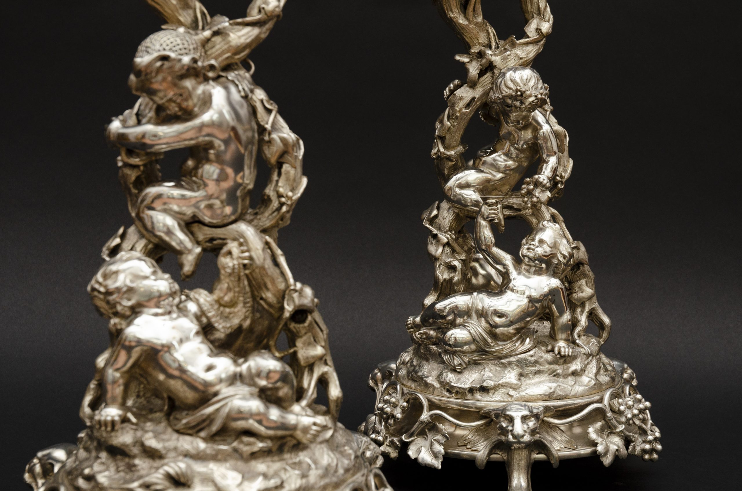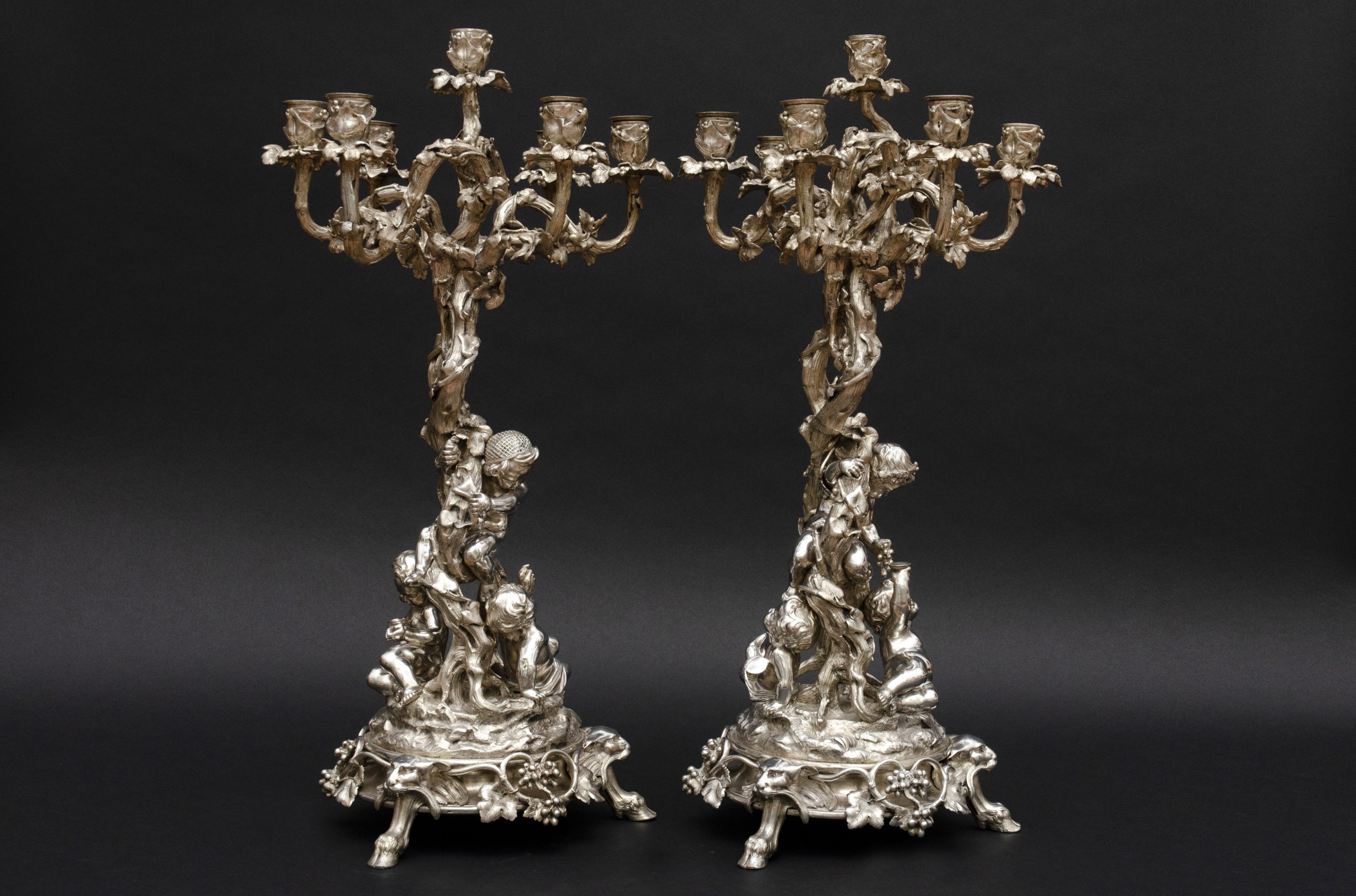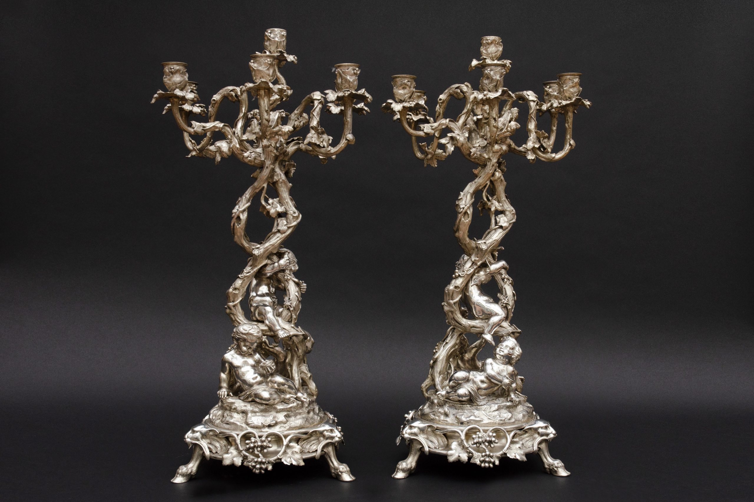 Homepage / Collection / Curiosa / Large silvered bronze candelabra’s, Christofle in Paris